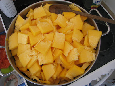 Este doce foi feito meio «a olho», não pesei a abóbora (usei metade da abóbora da foto), mas devia ter seguramente mais de 5 Kg!